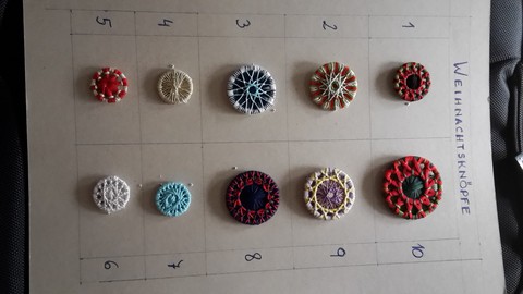 - Zwirnknopfschmuck, Zwirnknopfhaarschmuck, Zwirnknopfkreuze, Zwirnknopfbilder