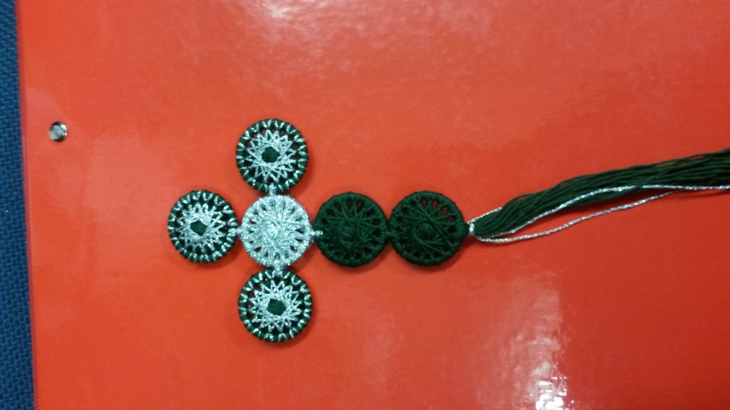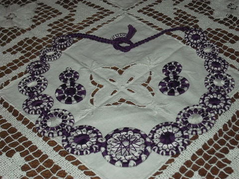 Zwirnknopfmacherin von einreihigen und mehrreihigen Knöpfen, die als Knöpfe im eigentlichen Sinn oder als Schmuckknöpfe für Halsketten, Broschen, Ohrgehänge; Haarschmuck verwendet werden können: elegant, rustikal, zu Trachten etc.
